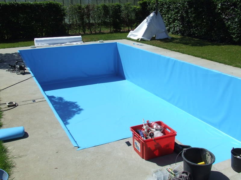 Voor zwembaden wordt door ons een speciale chloorbestendige gewapend PVC folie van 1,5 mm. dik gebruikt.